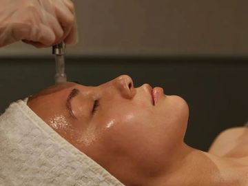 A non-invasive cosmetic exfoliation technique used to assist in removal of the outter-most layer of dead skin cells as well as vellus "peach fuzz" hair. One of our most popular treatments for pre-event skin prep, we combine our marine-enzyme therapy, LED therapy as well as a customised hydra jelly mask for the ultimate facial experience.