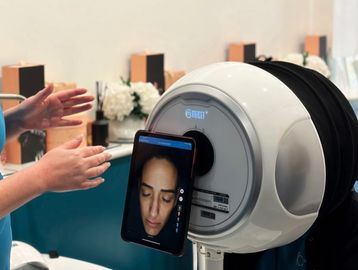 An extensive mapping of what your skin needs now and for the long-term. A deep dive into your skins past and present, heath history, and lifestyle factors paired with advanced technology.